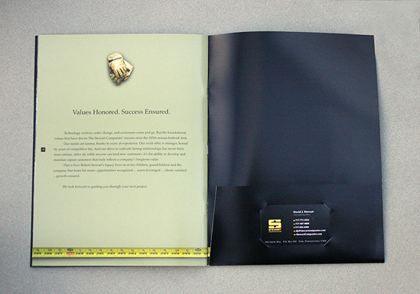 “I liked the way this corporate capabilities promotional book and folder combined all the Stewart companies – and there are a lot – into a succinct package for sharing with prospective clients.”